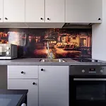 Van teakonyha is, ahol egyszerű ételeket lehet elkészíteni. A legközelebbi étterem hozzávetőlegesen 300 méterre található az apartmantól. A legközelebbi buszmegálló a Taraso Sevcenkos st és 250 méter távolságra van.